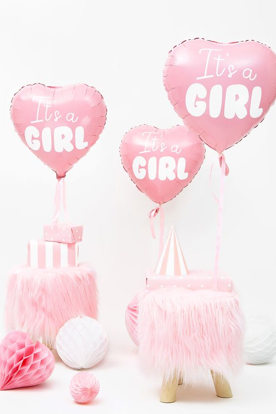Balon foliowy serce pudrowy róż z napisem It’s a girl.