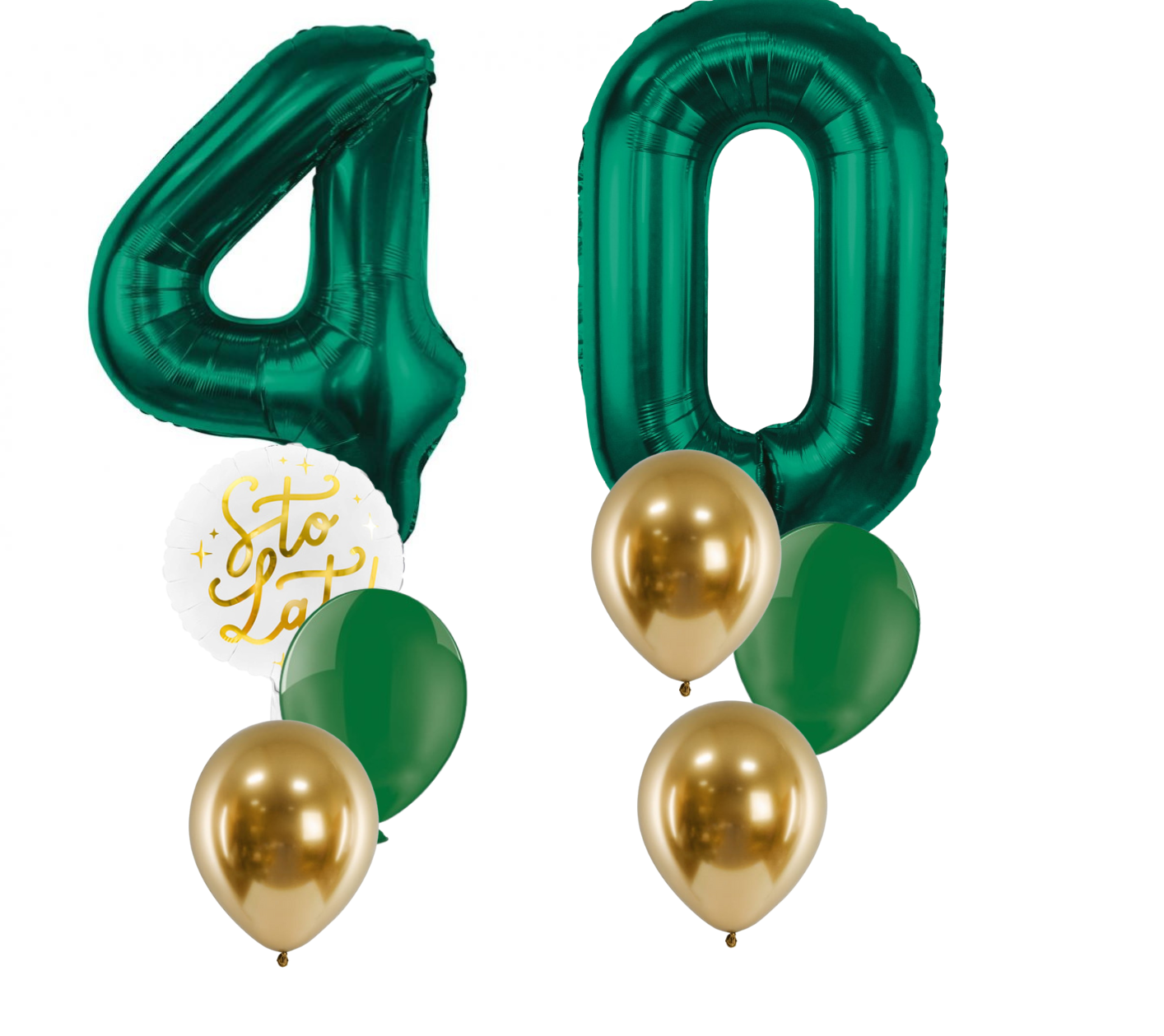 Bukiet balonowy na 40. urodziny w kolorystyce zielono-biało-złotej to stylowa i elegancka dekoracja, idealna na wyjątkowy jubileusz. Czterdzieste urodziny to doskonała okazja, by postawić na klasę, harmonię kolorów i efektowną oprawę przyjęcia. Zielone balony cyfry 40 w połączeniu z bielą i złotymi akcentami tworzą nowoczesną, a jednocześnie ponadczasową kompozycję, która świetnie sprawdzi się zarówno na przyjęciu domowym, jak i w restauracji czy sali bankietowej.