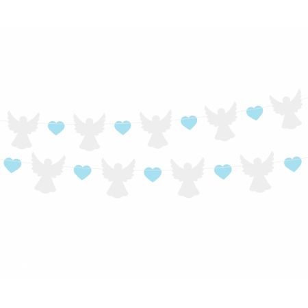 Girlanda papierowa Aniołki, niebieskie serduszka