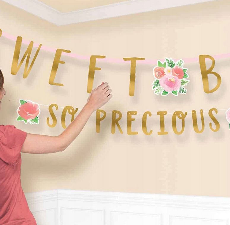 Baner papierowy z napisem Sweet baby girl, so precious.