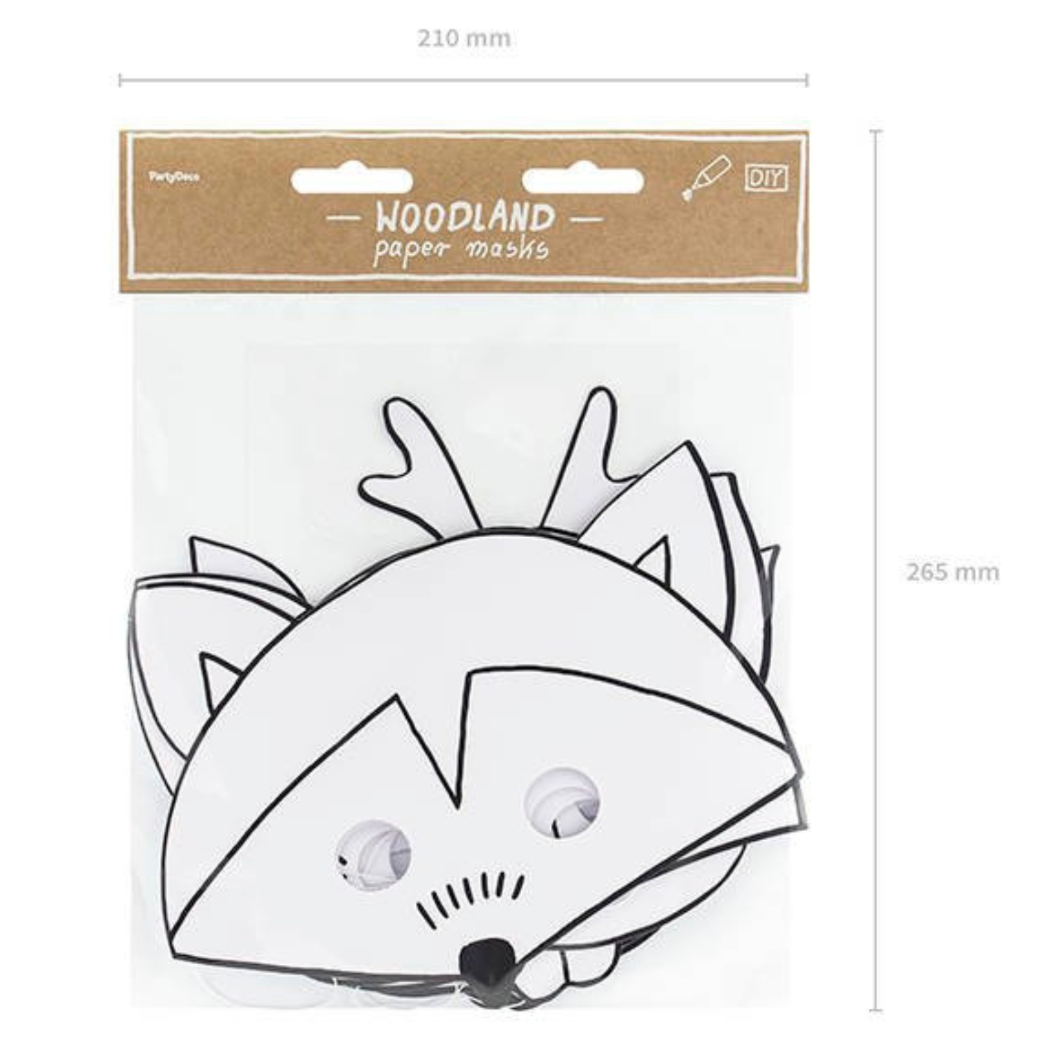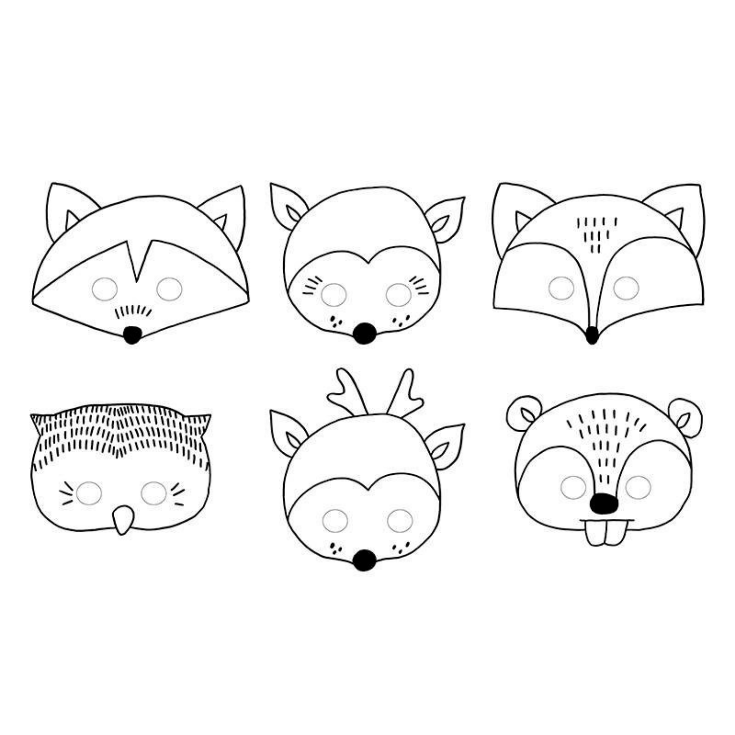 Maski papierowe zwierzątka leśne do samodzielnego kolorowania.