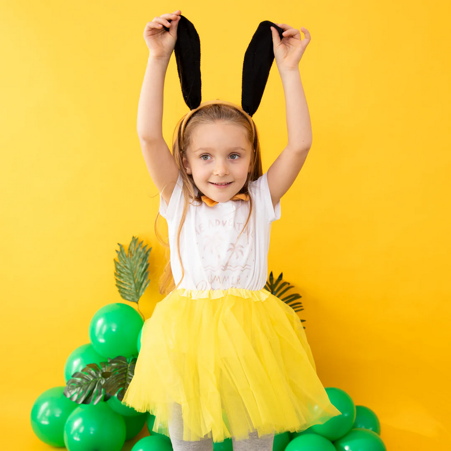 W zestawie: opaska na głowę oraz ogon i muszka mocowane przy pomocy gumki