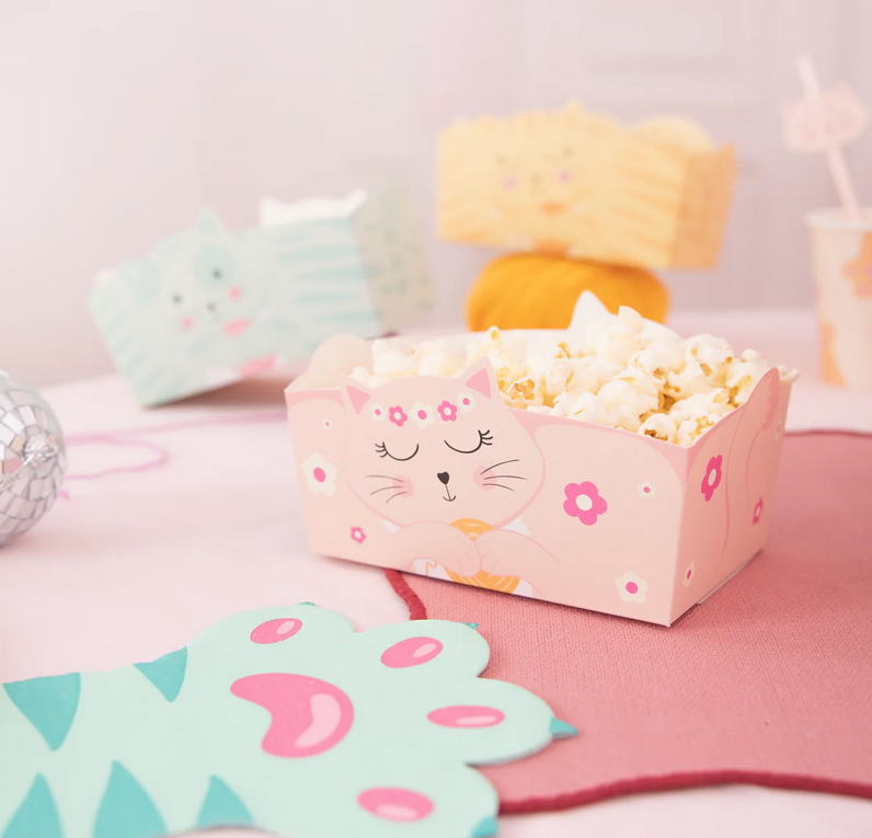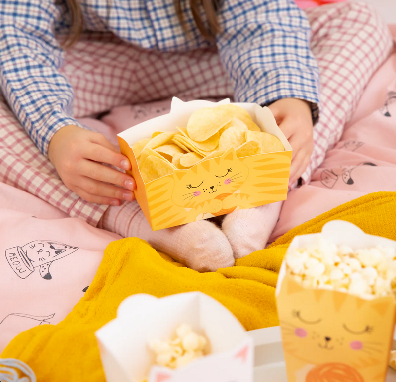 Papierowe pojemniki na popcorn i chipsy to bardzo przydatne akcesoria na przyjęcia dla dzieci, oglądanie meczy czy wieczory filmowe. Nie stłuką się, można przygotować oddzielna porcję dla każdego gościa i dopasować do tematyki przyjęcia.