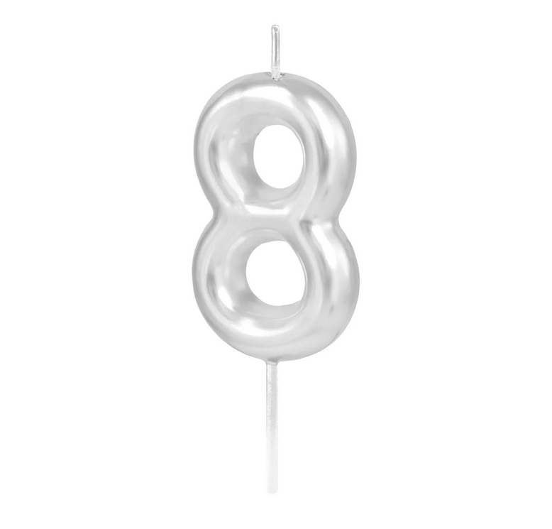 Świeczka srebrna połysk cyfra 8