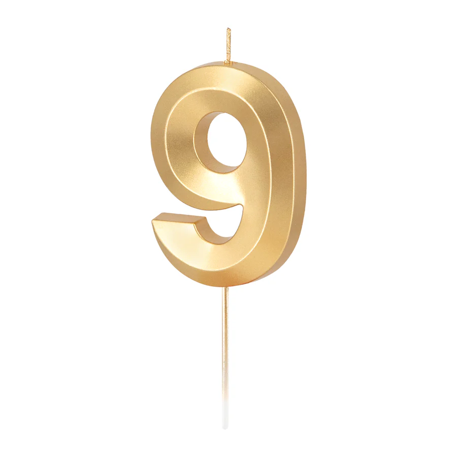 Świeczka złota metaliczna geometryczna cyfra 9